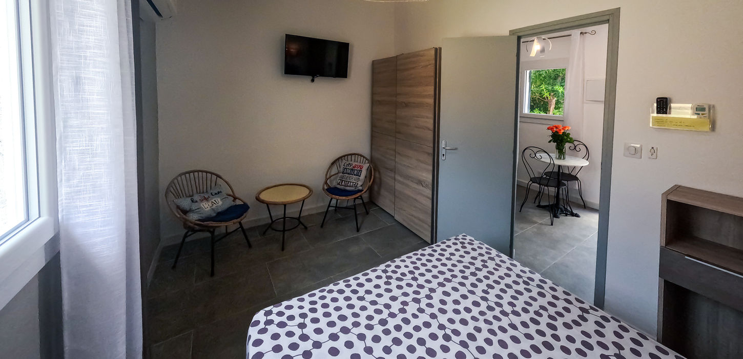 Le logement est prévu pour 2 personnes, il comporte une chambre avec un lit double en 140 cm.La surface du logement est de 17,79 m².